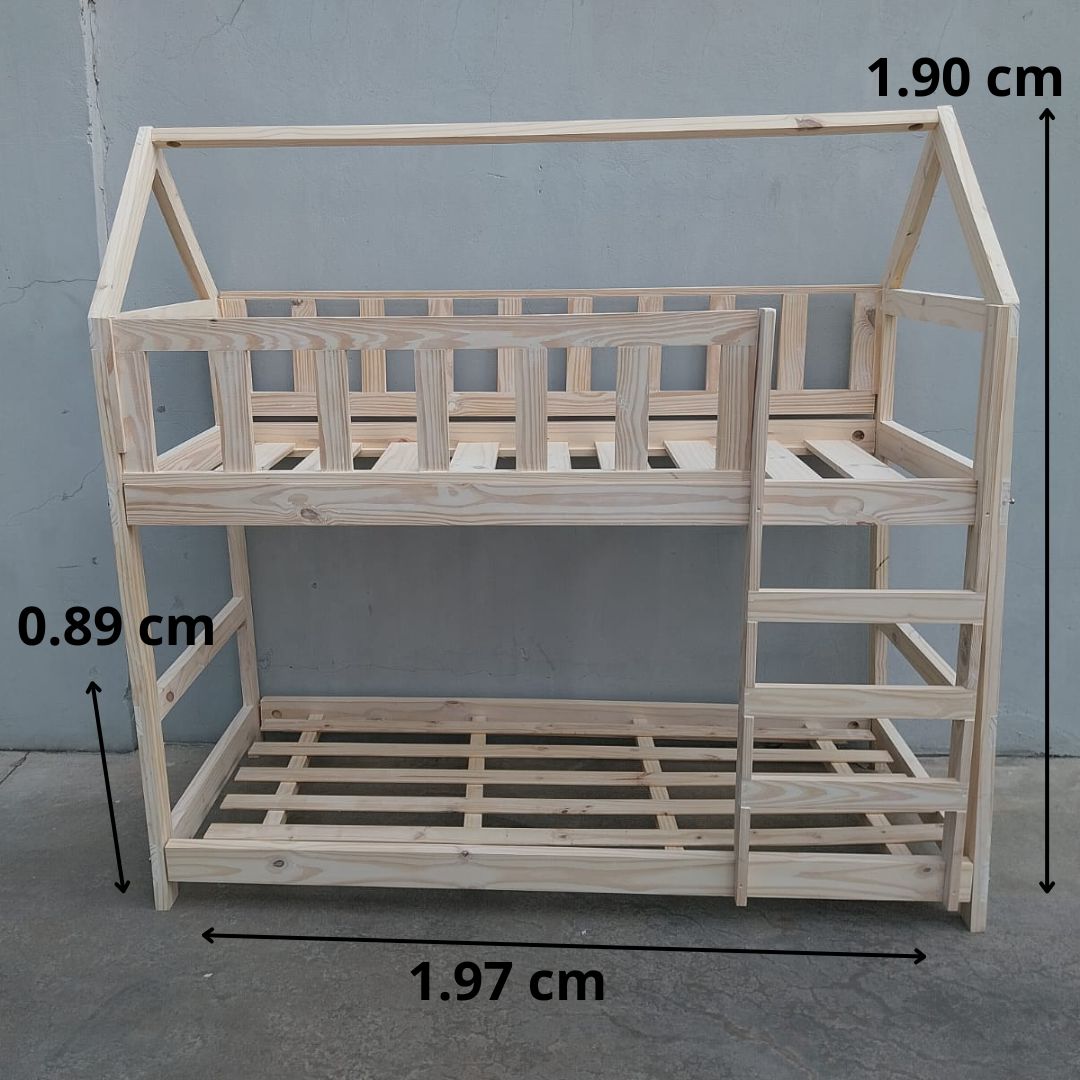 < Anterior Siguiente > Cama Superpuesta Montessori Categoría: MueblerÍa CAMAS Cama Superpuesta Montessori Material: pinoTerminación: lijado listo para pintarMedidas finales: 87x197x190